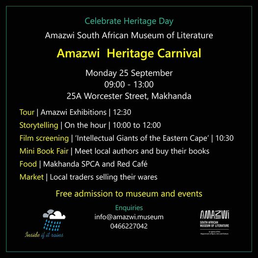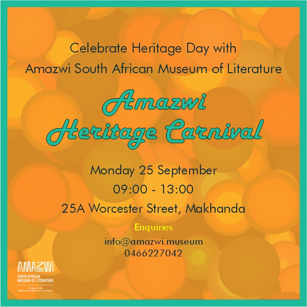 Here is a list of the activities you may partake in at the Amazwi South African Museum of Literature in celebration of Heritage Day! Don’t miss out! See you there!