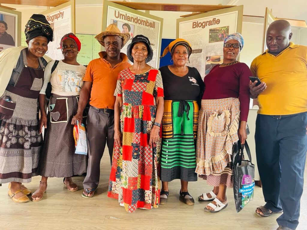 A travelling exhibition, after the temporary one on display at Amazwi, was produced further in celebration of her 80th birthday. The exhibition was displayed at a programnme organised by Amazwi at Gotyibeni Primary School, Gungululu. This is the hometown of Dr Magona and she got the opportunity to reconnect with the community and, most importantly, learners within the area. The programme centred around World Read Aloud Day and Dr Magona’s relevant literature.