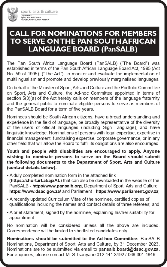 Advertisement: Serve on PANSALB!
